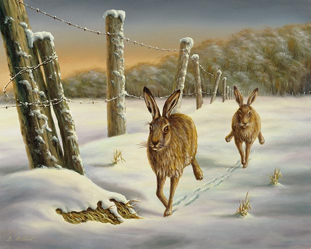 Relevante Schlagwörter zur Ausstellung "Hasengemälde": Gemälde, Hase, Hasen im Winter Feldhase gemalte Feldhasen vor Wald und Feldzaun im Abendrot bei Schnee, Hasenjagd, Treibjagd, Niederwild, Hasengemälde, Hasenbild, gemalte gezeichnete Hasenbilder, Feldhasengemälde, Feldhasenbild, Feldhasenbilder, Rammler Blume, Löffel, Wild, Bild, Bilder, Ölbild, Ölbilder, Ölgemälde, Gemälde, Jäger, Jagd, Treibjagd, Jagdstillleben, Jagdmaler, Naturmaler, Naturmalerei, Naturfreunde, Tier, Wildmalerei, Tiergemälde, Jagdmotiv, Jagdmotive, Jagdgemälde, Wildmotiv, Wildmotive, Wildgemälde, Wildtiergemälde, Tierbild, Tierbilder, Jagdbild, Jagdbilder, Jagdschein, Wildbahn, Wildhege, Jägerei, Wildmaler, Kunstmaler, Tiermaler, Jagdmaler, Kunstmaler, Ausstellung, Gemäldeausstellung, Galerie, Tiermalerei, Tiermotive, Wild, Jagdmotive, Jagdgemälde, Wildgemälde, Tiergemälde, Wildmalerei, Tierbild, Jagdbilder, Tierbilder, Jägerei, Wildmaler. Hasenfährten Trittsiegel Hasenspuren, Hasenlöffel Zippe oder Häsin im Schnee an Stacheldrahtzaun.