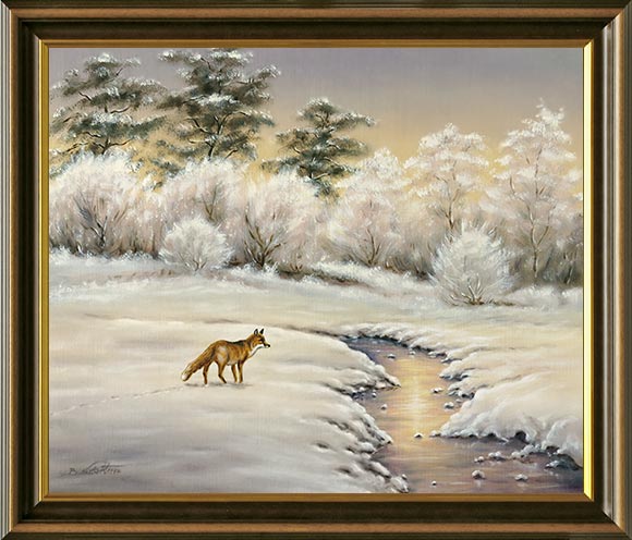 Relevante Schlagwörter zur Gemälde-Beschreibung der Webseiten und Fuchsgemälde: Fuchs, Winterfuchs, Fuchsbild, Fuchsbilder, Fuchsgemälde, Winter, Schnee, Landschaft, Winterlandschaft, Schneelandschaft, Wintergemälde, Winterbild, Winterbilder, Bach, Bachlauf, Frost, Eis, Eisdecke, Eisschicht, gefroren, zugefroren, Winterbach