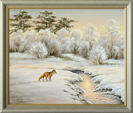 Relevante Schlagwörter zur Gemälde-Ausstellung der Webseiten und Fuchsgemälde: Fuchs, Winterfuchs, Fuchsbild, Fuchsbilder, Winter, Schnee, Landschaft, Winterlandschaft, Schneelandschaft, Wintergemälde, Winterbild, Winterbilder, Bach, Bachlauf, Frost, Eis, Eisdecke, Eisschicht, gefroren, zugefroren, Winterbach