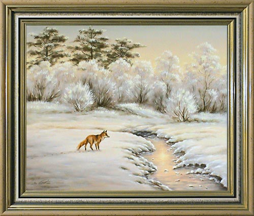Relevante Schlagwörter zur Gemälde-Beschreibung der Gemälde / Fuchsgemälde: Fuchs, Winterfuchs, Fuchsbild, Fuchsbilder, Fuchsgemälde, Winter, Schnee, Landschaft, Winterlandschaft, Schneelandschaft, Wintergemälde, Winterbild, Winterbilder, Bach, Bachlauf, Frost, Eis, Eisdecke, Eisschicht, gefroren, zugefroren, Winterbach
