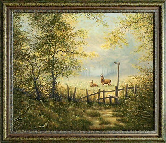 Relevante Schlagwörter zur Umschreibung des ausgestellten Gemälde-Typs: Rehe, Reh, Rehgemälde, Rehbild, Rehbilder, Rehwild, Rehwildbild, Rehwildbilder, Rehwildgemälde, Rehbock, Rehbockgemälde, Bock, Bockgemälde,  Gemälde, Waldwiese, Rehbockbild, Rehbockbilder, Bockbild, Bockbilder, Bild, Bilder, Ölbilder, Ölgemälde, Ölbild