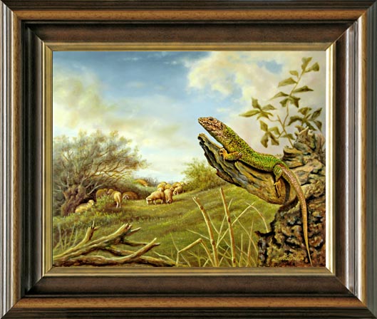 Relevante Schlagwörter zur Gemäldeausstellung Tiere in der Natur": gemalte Smaragdeidechse, gemalte Eidechse, Tiergemälde, gemalte Tierbilder, Tierölbilder, Tiermalerei, Kriechtiere, Gemälde, Ölgemälde, Gemäldeausstellung, Ausstellung, Galerie, Gemäldegalerie, Jagdmaler, Tiermaler, Tier, Tiere, Wild, Wildmaler, Wildmalerei, Wildgemälde, Wildtiere