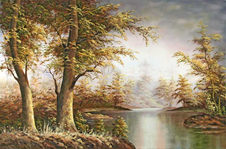 Gemälde zu den Themen: Wald und Flur, Herbststimmung, Waldsee, See