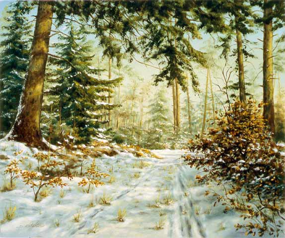 Relevante Schlagwörter zur Gemäldeausstellung "In Wald und Flur": Winter, Winterwald, Schnee, Verschneiter Waldweg, geschneit. Wintergemälde, Schneegemälde, Winterbilder, Bild, Bilder, Gemälde, Ölgemälde, Ölbilder, Ölbild. in Öl